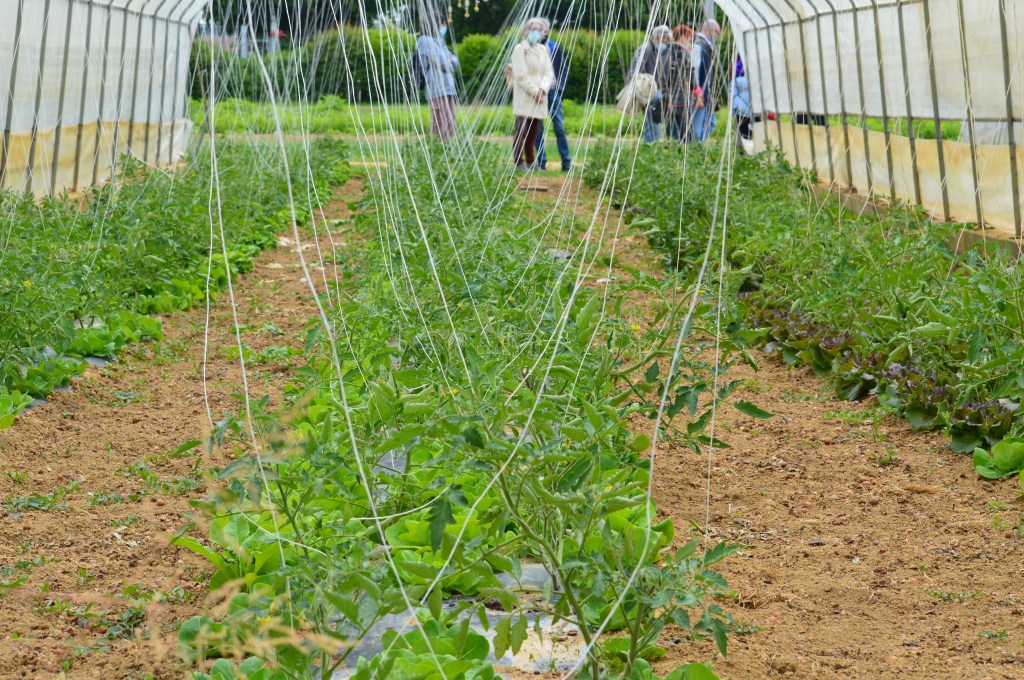 Tutto all’Orto del Pian Bosco è studiato nei minimi particolari e volto per favorire equilibrio e sintonia dell’ ambiente: il telo pacciamante utilizzato è prodotto con amido di mais, consente di trattenere l’ umidità, evita la crescita dell’erba e si degrada naturalmente; all’interno delle serre e tra un tunnel e l’altro vengono coltivate alcune erbe e fiori sinergici oltre a fiori che attirano gli impollinatori; sono stati creati laghetti che servono per attirare uccelli, anfibi, insetti…il tutto per riportare ad un alto livello di biodiversità, cosa che consente di ridurre anche i trattamenti in campo grazie alla presenza di predatori naturali, il frutteto è stato arricchito con nidi artificiali per uccelli e pipistrelli, insomma, una vera e propria oasi naturale. Frutta, ortaggi e nocciole vengono in parte lavorati e trasformati all’interno del laboratorio ottenendo così ottime conserve e marmellate, che abbiamo avuto l’opportunità di gustare durante la colazione ed il pranzo curato nei minimi particolari.
