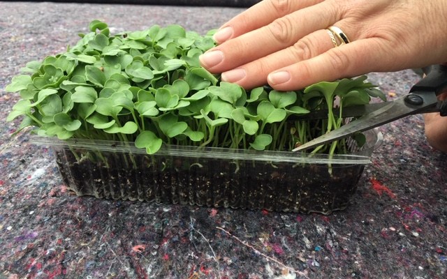 I micro ortaggi sono nati in modo casuale: ho ragionato che in inverno (il periodo di sospensione della produzione delle uova delle nostre galline, tra novembre, dicembre poi riprendono a gennaio) le nostre galline non hanno verde da mangiare perché per la conformazione del nostro allevamento e per la collaborazione che c’è con il gruppo Abele – per cui io prendo gli scarti delle verdure e le do da mangiare alle galline – non abbiamo verdura d’inverno. Allora, mi dico, c’è un abbassamento del livello di vitamine perché, per quanto siano alimentate con mangime biologico che contiene delle vitamine, io voglio che le mie galline mangino anche verde, quindi penso a come fare. Ma se io semino in casa vaschette con tanti semi produco dei micro ortaggi che possono dare vitamine alle mie galline e così sono andata a studiarmi questa cosa ed effettivamente è una pratica che esiste. Ovviamente è estremamente dispendiosa, ma per Biomatto, anche se sto cercando un equilibrio economico, la qualità viene comunque prima e la qualità vuol dire la qualità del prodotto in questo caso uovo e la qualità del benessere degli animali perché vivono una vita più naturale possibile e con gioia non perdo capi curandoli bene. Allora inizio a studiare e scopro che c’è un mondo dietro i micro ortaggi: sono prodotti che contengono il doppio delle vitamine rispetto all’ortaggio finito perché le consumi all’apertura dei due cotiledoni o al massimo alla prima o alla seconda foglia vera e quindi è una bomba di vitamine, una meraviglia della natura che dà tutta la sostanza al seme per poter aprire, nascere e sviluppare la pianta. È un po’ come mangiare il tuorlo che darebbe tutto il nutrimento al pulcino quando l’uovo venisse fecondato, è esattamente la stessa cosa. Scopro e mi appassiono a questo mondo perché è un’agricoltura con vantaggi anche in termini di sostenibilità: hai un doppio valore nutritivo di un prodotto con pochissimo consumo di acqua e terra. Questo in un’ottica futura o di Paesi che non hanno disponibilità di tanta acqua e terra, come sta diventando il nostro, è un argomento interessante. Inserito in un contesto logico e sensato, non commerciale e basta, è un prodotto che deve essere come l’ho pensato io per le galline, cioè nel periodo di sospensione di produzione delle verdure da dicembre a febbraio/aprile. Il vantaggio doppio è che io propongo questo prodotto in vaschetta direttamente con il substrato perché il cliente possa averlo sempre fresco tenendo la vaschetta davanti a una finestra o sul balcone, quando poi c’è una buona temperatura, prendendosene cura al pari della pianta di prezzemolo o basilico e usandolo al momento, che vuol dire che ha la qualità migliore del prodotto in quanto a nutrienti e sali minerali perché è un prodotto oltre il fresco. Hai un prodotto che dura 2-3 settimane, puoi tagliare la porzione che ti serve per quella insalata oppure fai i crostini di pane con burro salmone e micro ortaggio di rapanello: se hai ospiti, è anche bello mettere la vaschetta in tavola, tagliare e condire al momento. È portare la terra sulla tavola. È un bel gesto”.