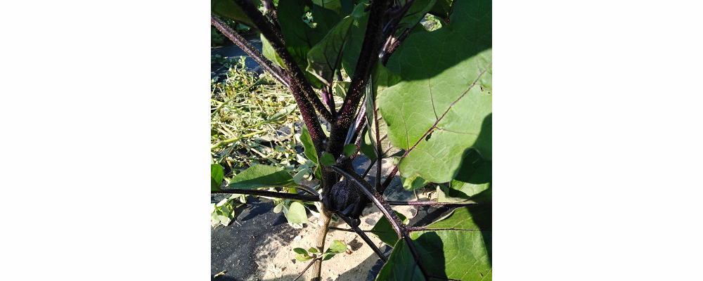 Claudio Bosco, orticoltore biologico di Nichelino, ci racconta: “Quest’anno le melanzane sono belle, ma non sono ancora in produzione. Sia quelle nere che quelle viola, sono molto belle e molto bene avviate con la pacciamatura che ha ben tenuto, si sono avvantaggiate delle piogge insistenti di quest’anno quindi non ho dovuto irrigare. Ho messo i piantini intorno al 20 maggio, con pacciamatura e manichetta, manichetta usata molto poco perché poi ha cominciato a piovere sulle piantine e le ha tenute umide per molto tempo. I piantini li ho acquistati in vivaio. Ho messo due varietà, la nera e la viola. I primi fiori sono fioriti circa una settimana fa, alcuni sono già impollinati, poi cadono petali e si formano i sofficini, ci metteranno ancora una ventina di giorni a essere pronte per la raccolta. Poi di solito durano fino a fine ottobre; la produzione va calando col freddo però fino a fine ottobre producono, normalmente fino alle prime brinate. Nella tecnica di coltivazione sono passato a eliminare le infestanti lasciandole a solchi alternati. Vale a dire: le infestanti sono alte nei solchi, nella pacciamatura naturalmente no. Io passo con il decespugliatore a rasarle, però passo a solchi alterni, uno sì e uno no, in maniera che eventuali predatori del ragnetto rosso giallo – che normalmente attacca le melanzane – abbiano un rifugio, un posto dove stare quindi se si verificasse un attacco di ragnetto rosso giallo, normalmente ci sono i predatori in questi solchi infestati che li tengono indietro. Sono passato a rasare le infestanti una settimana fa, adesso si vede l’alternanza di solco rasato e flora spontanea. Fra una settimana passerò a rasare gli altri, intanto quelli che sono tagliati ricrescono e così conservo l’habitat per gli eventuali predatori. Questa idea, sulle melanzane, l’ho messa a punto da poco. Avevo provato la cosa sulla coltura di mirtilli di un amico dove le coccinelle, come predatori dei parassiti, avevano loro rifugio nella flora spontanea. Lui aveva le file dei mirtilli pacciamati, gli ho consigliato di rasare a file alterne e ha funzionato. Poi stanno arrivando delle dorifore, che sono parassiti delle melanzane, se le mangiano. Stasera andrò a comprare il litotamio e lo metto sulle foglie. È una farina di rocce, rocce molto finemente macinate: io spargo questa farina al mattino sulle foglie umide di rugiada in modo che aderisca; questa farina di rocce rimane aderente alle foglie e disturba la masticazione degli insetti, perché sono particelle molto piccole, ma molto dure. Tutti gli insetti masticatori si ritrovano questa cosa che dà loro molto fastidio e smettono di mangiare. Non è velenosa, è solo un disturbo fisico.