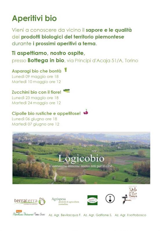 Vieni a conoscere da vicino il sapore e le qualità dei prodotti biologici del territorio piemontese durante i prossimi aperitivi a tema, presso Bottega in bio, Via Principi d’Acaja n. 51/a, Torino