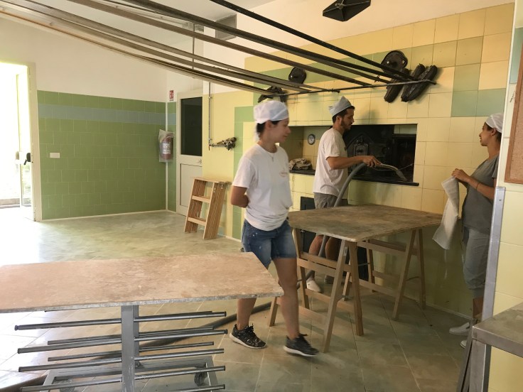 Il forno, bellissimo, ha una superficie di 20m2 con base in tufo e copertura in mattoni. Roberto grazie al suo passato da muratore ogni tanto interviene anche nella riparazione, infilandosi nella bocca del forno e lavorando dall’interno.