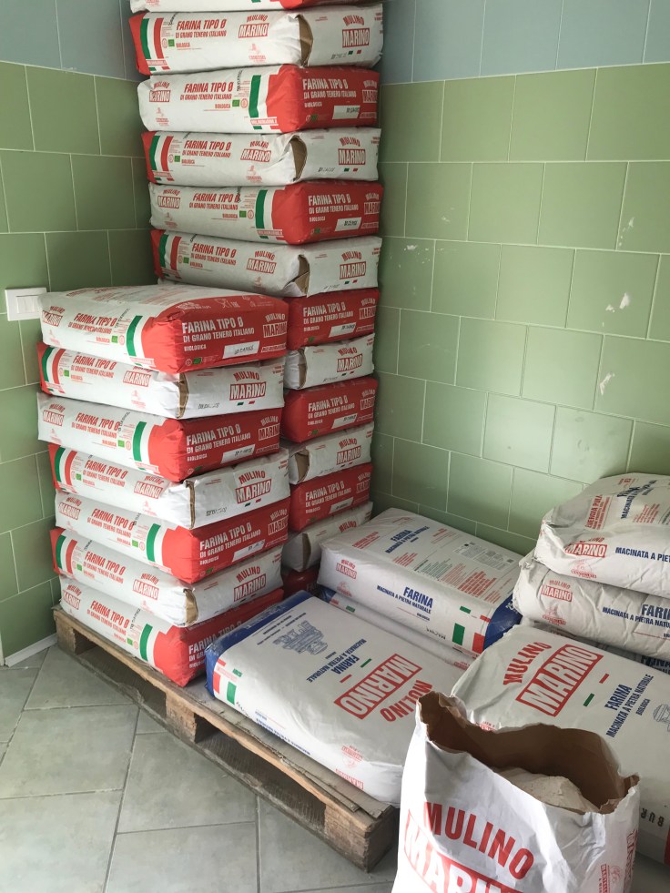 Verso le cinque e mezza, sei del mattino i pani sono pronti per essere infornati: grano tenero, grano duro, farro, segale, khorasan, monococco enkir, mais, con farine integrali o setacciate, tutte biologiche.
